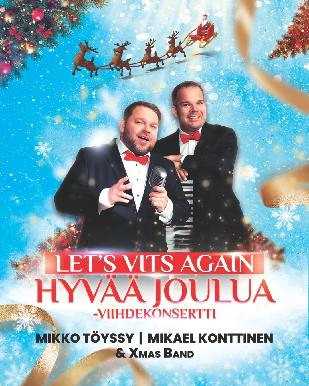 Suureen suosioon noussut Mikko ”Tökä” Töyssyn ja Mikael ”Micke” Konttisen yhteisprojekti Let´s Vits Again lähtee joulukiertueelle! Let´s Vits Again  - Hyvää joulua! on musiikin ja komedian täyttämä esitys, jossa kuullaan hauskojen juttujen lisäksi upeita tulkintoja hienoista joululauluista. Joulukonsertin ohjelmassa ovat mm. Oi jouluyö, Valkea joulu, Sydämeeni joulun teen, Joulupukki matkaan jo käy sekä tietenkin Kulkuset.